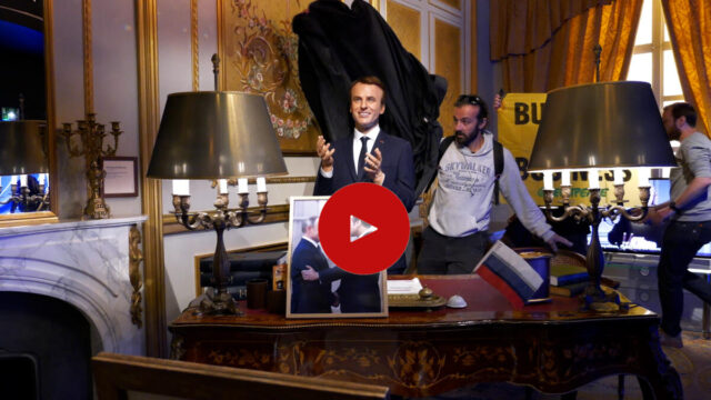 فيديو | غرينبيس تسرق تمثال الرئيس الفرنسي من متحف الشمع احتجاجا على العلاقات التجارية بين باريس وموسكو